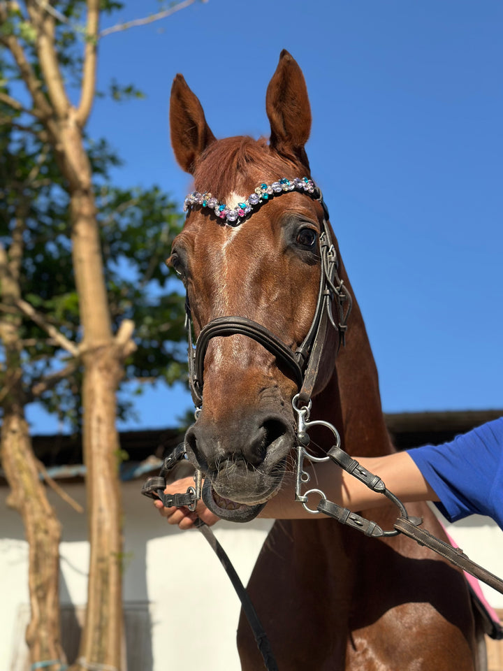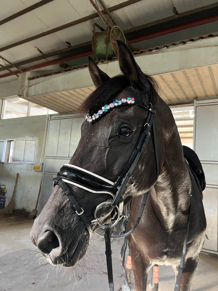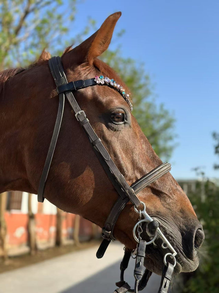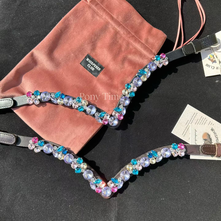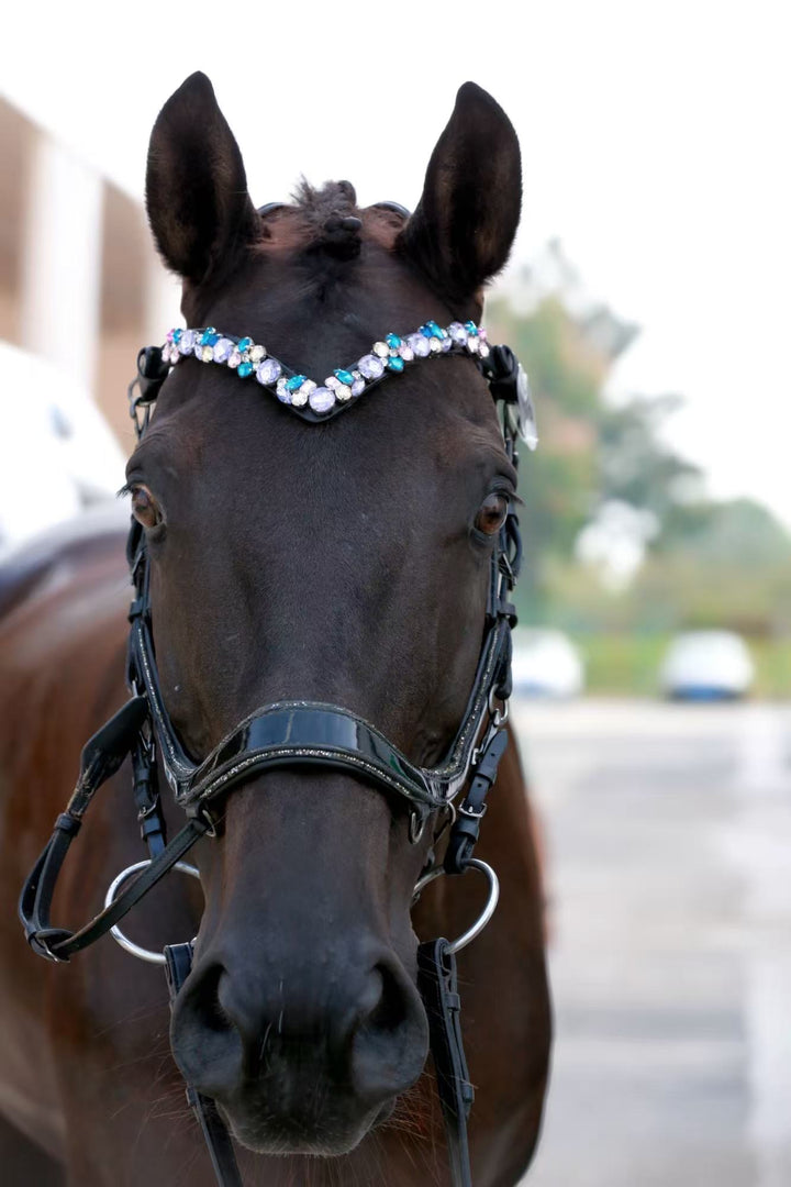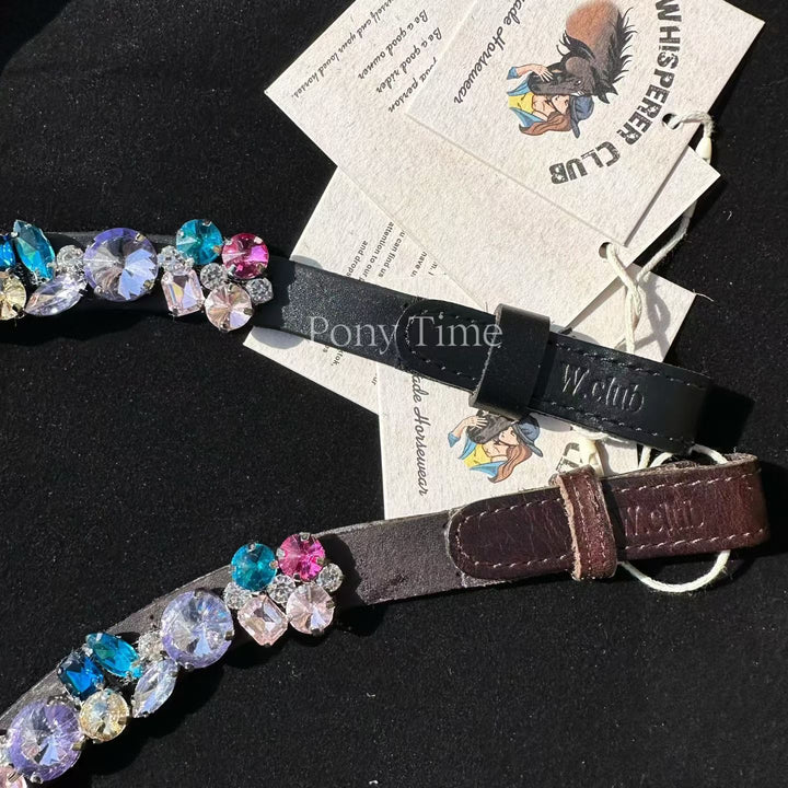 Each crystal is hand-set on soft premium leather (available in brown or black) to highlight your horse’s natural elegance.