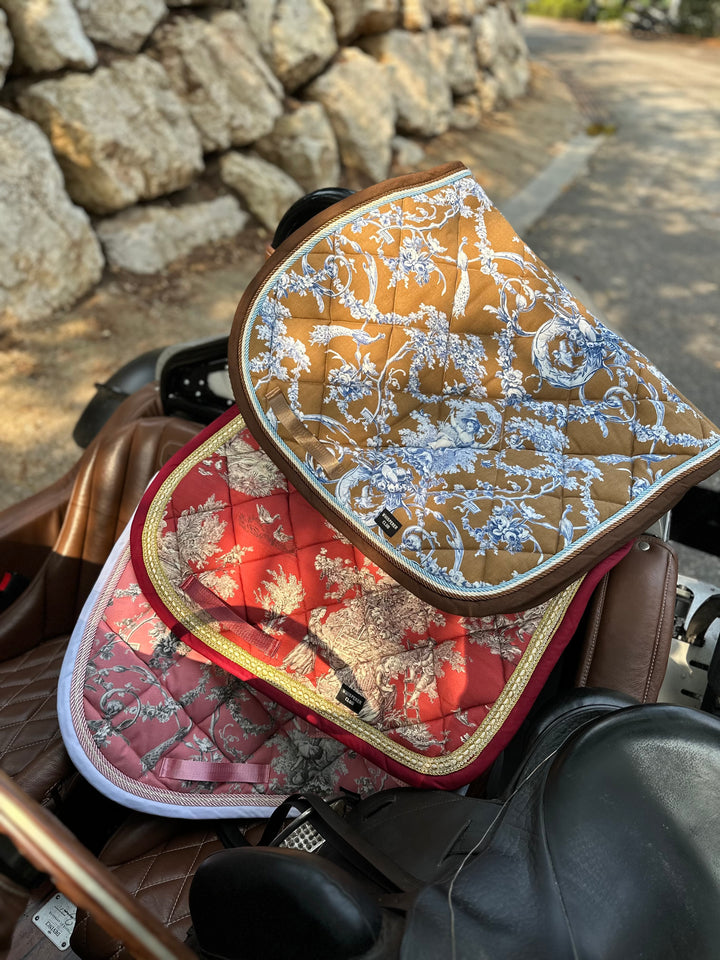 Each saddle pad is crafted with soft-touch quilting and finished with refined cord piping in beige-gold tones.